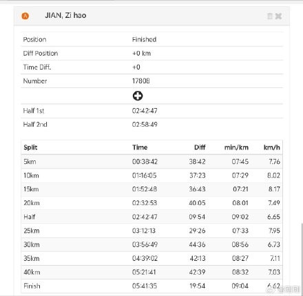 《英雄联盟》传奇选手Uzi(简自豪)今日参加了巴黎奥运会的大众马拉松比赛,并顺利跑完全马,42.195公里总用时5小时41分35秒。